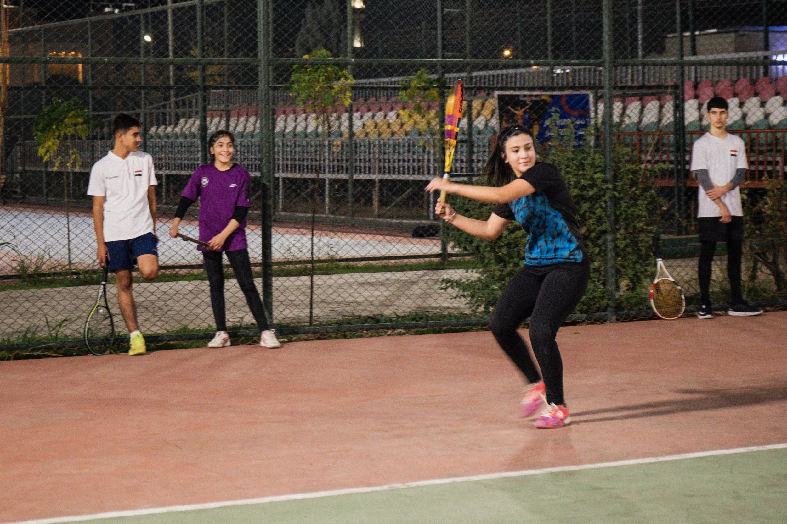 The Iraqi/Kurd Tennis Team practices on a Wednesday night in November 2022. (Photo by Carlotta Cardana)