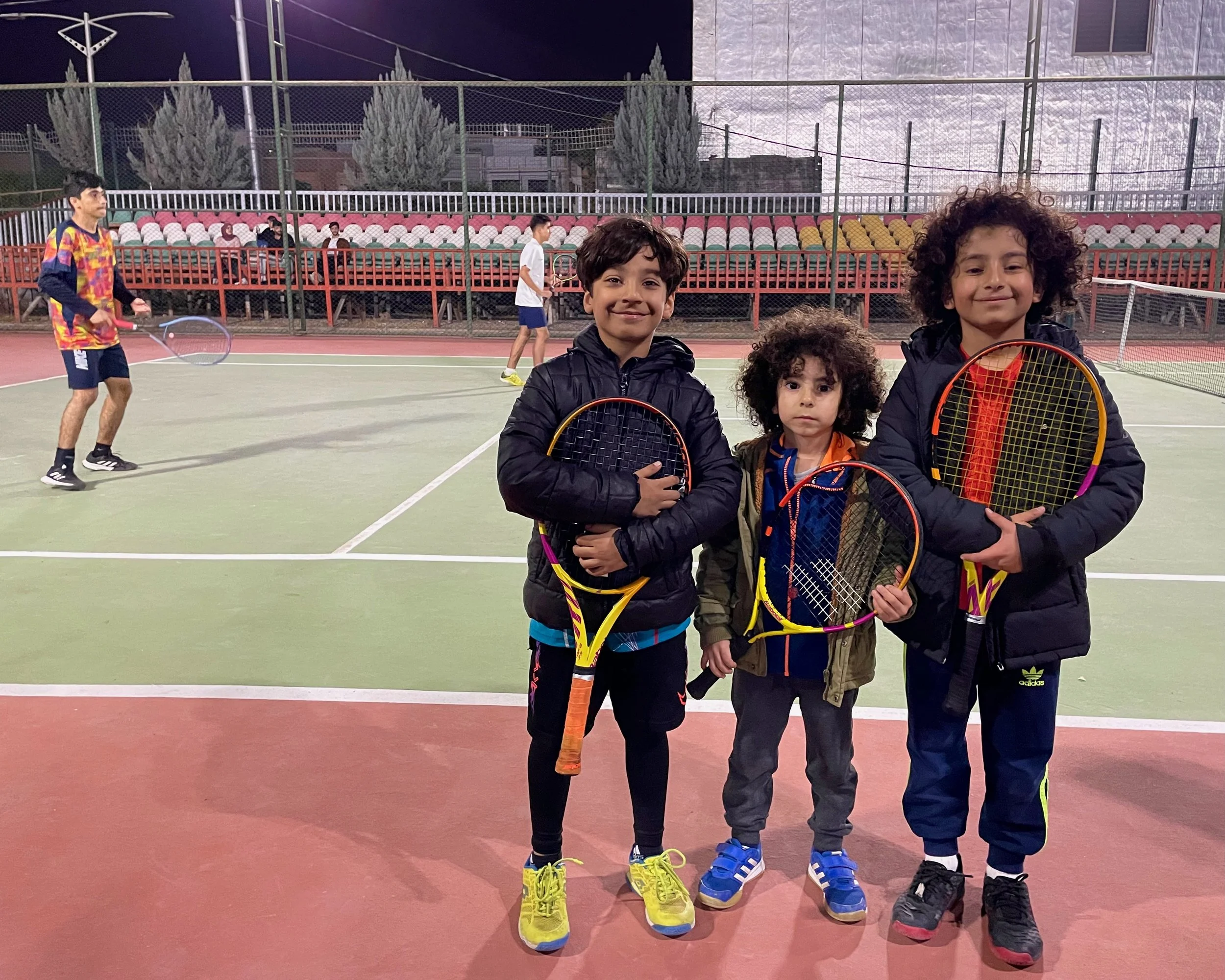 The youngest members of the Iraqi/Kurd Tennis Team pose for a photograph after practice. (Photo by Carlotta Cardana)