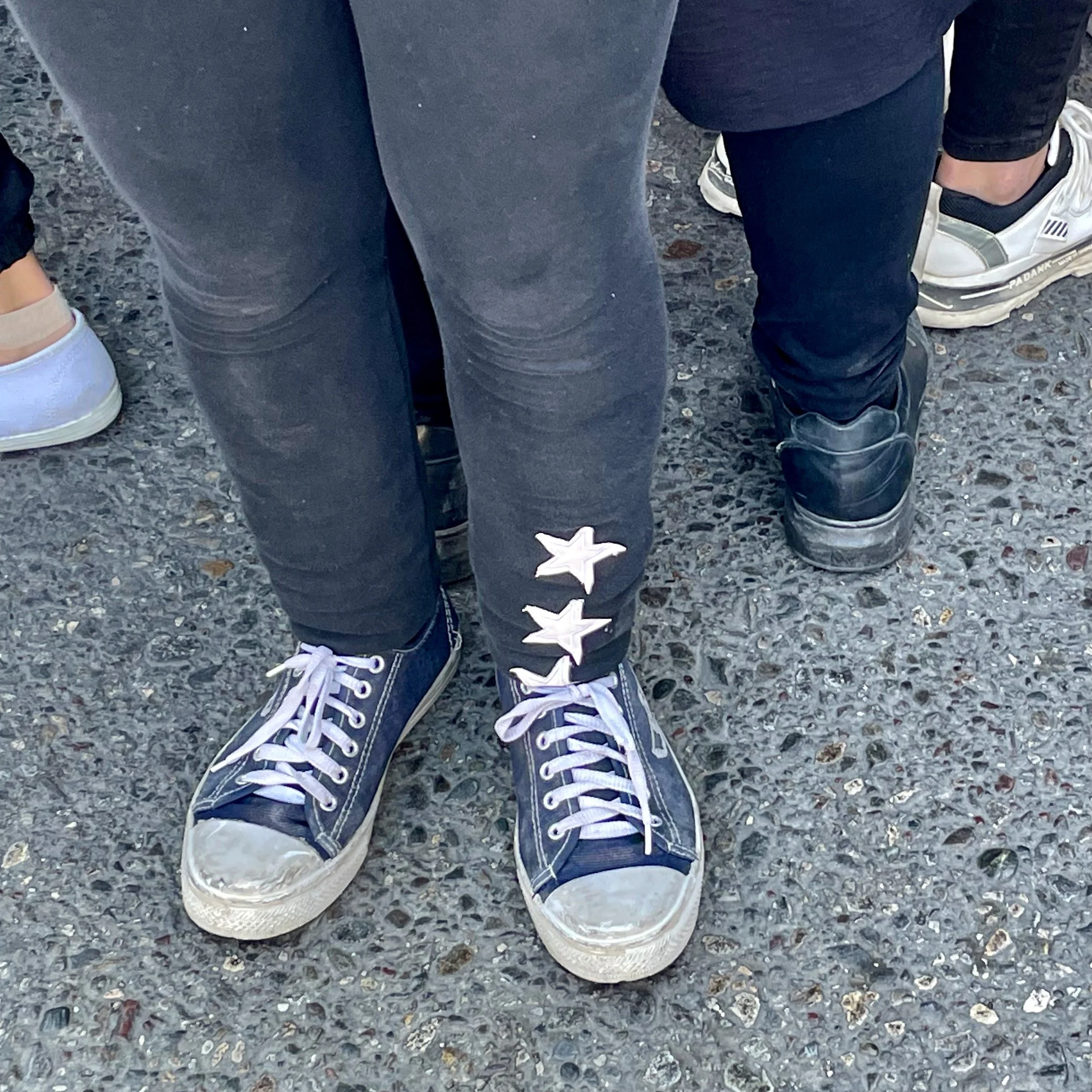 Girls run in street shoes during the 2021 Iraqi Marathon Fun Run.