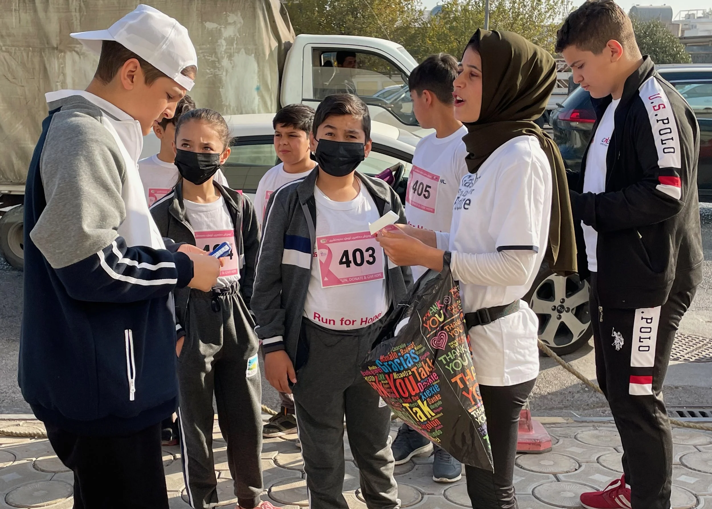 Teachers prepare their students for the 2021 Iraqi Marathon Fun Run.